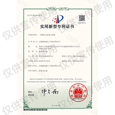 Patent certificate for low-temperature ethylene gas pressure reducer